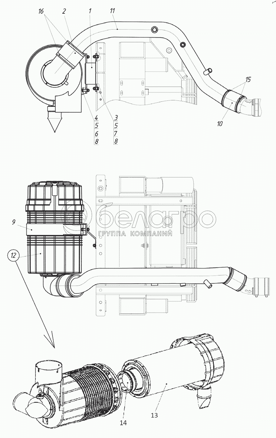 Каталог запасных частей к технике: МТЗ БЕЛАРУС 1025.7. Установка воздухоочистителя 923.7С-1109125