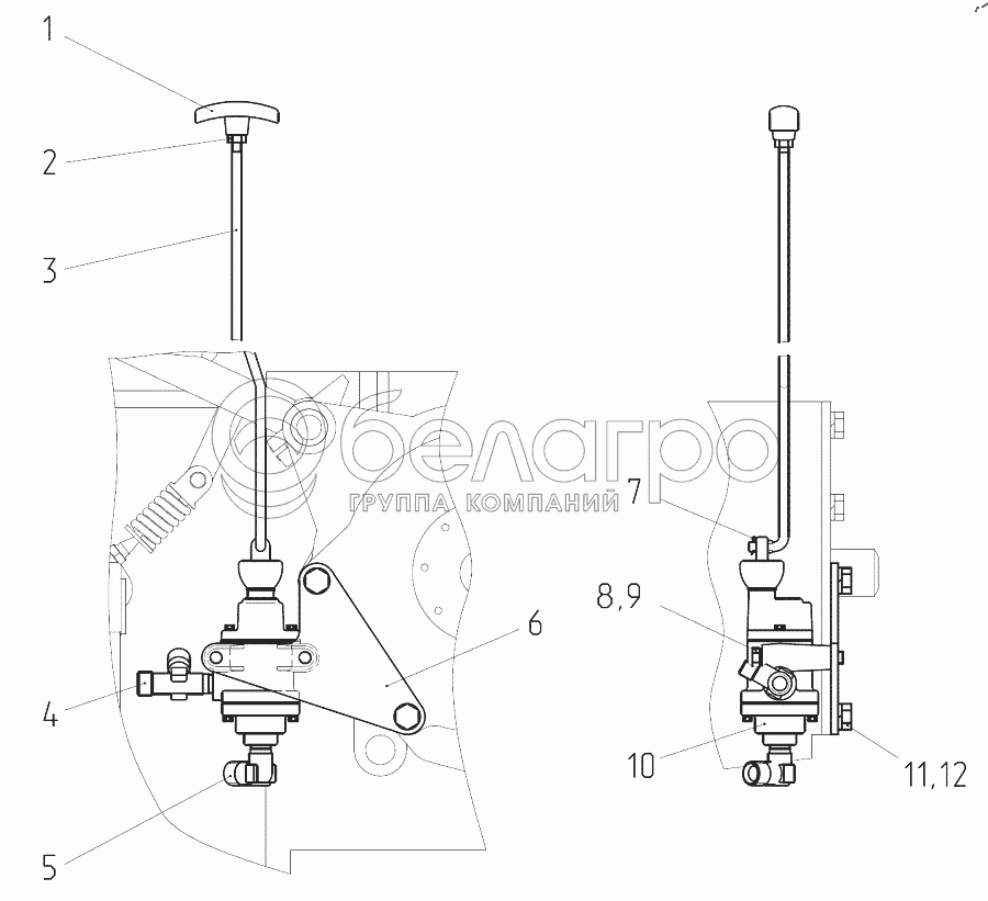Каталог запасных частей к технике: МТЗ БЕЛАРУС 1220.7. Кран тормозной 1220.7-3514105
