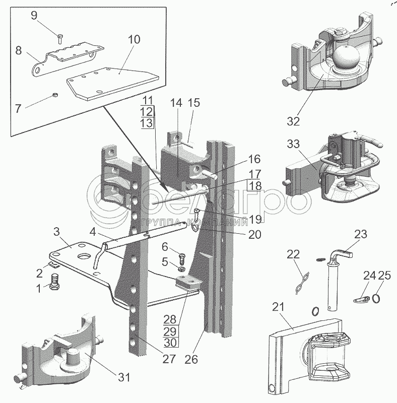 Каталог запасных частей к технике: МТЗ БЕЛАРУС 1220.7. Тягово-сцепное устройство 1221-2707010