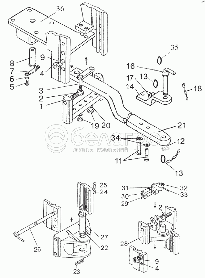 Каталог запасных частей к технике: МТЗ БЕЛАРУС 1220.7. Тягово-сцепное устройство (варианты комплектации)