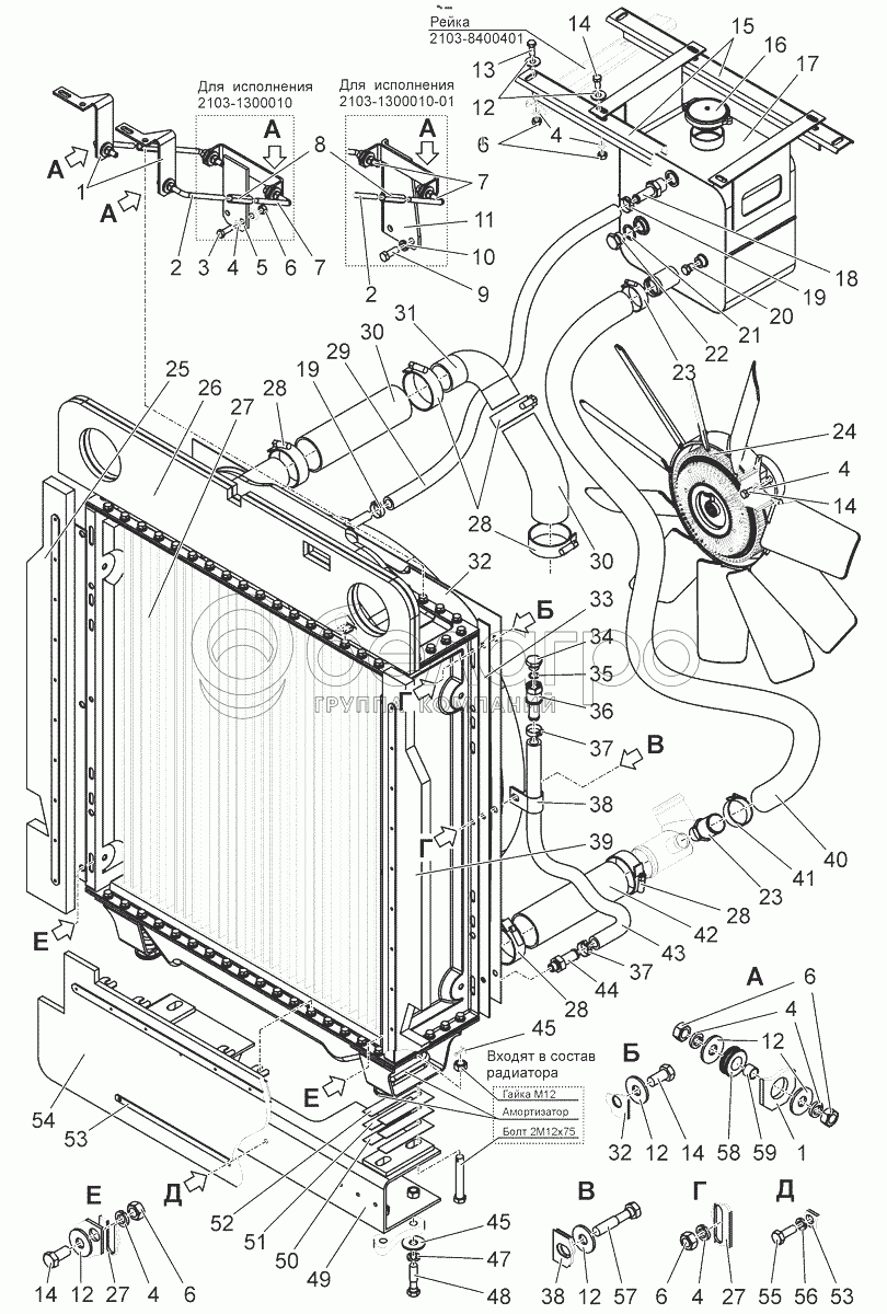 Каталог запасных частей к технике: МТЗ БЕЛАРУС 2103. Блок охлаждения. Устройство сливное. Штуцер сливной