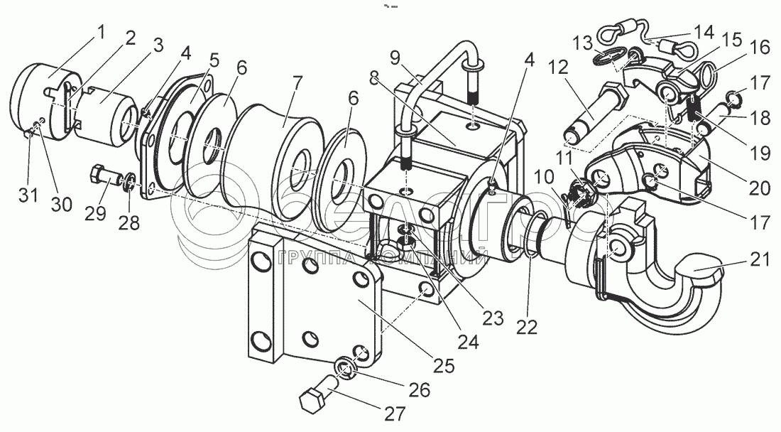 Каталог запасных частей к технике: МТЗ БЕЛАРУС 2103. Крюк с амортизатором