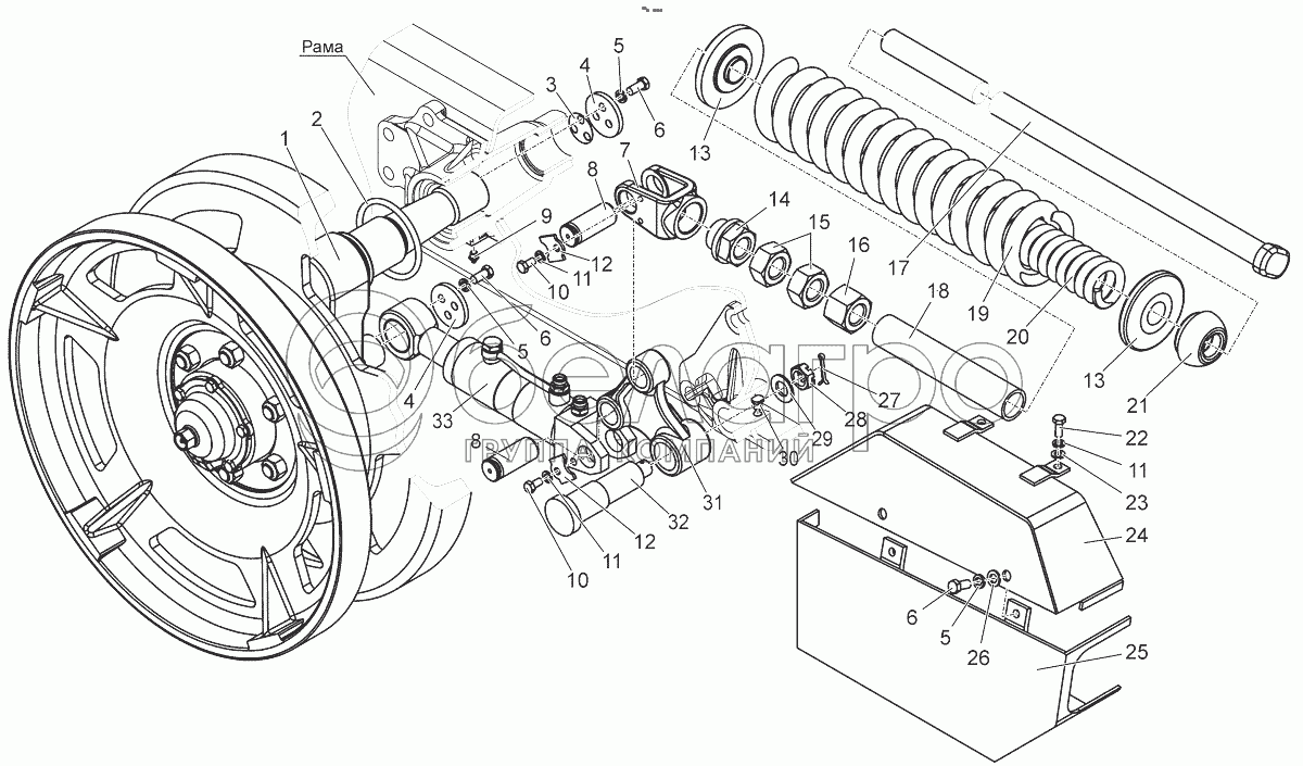 Каталог запасных частей к технике: МТЗ БЕЛАРУС 2103. Механизм натяжения гусеницы. Амортизатор. Кожух