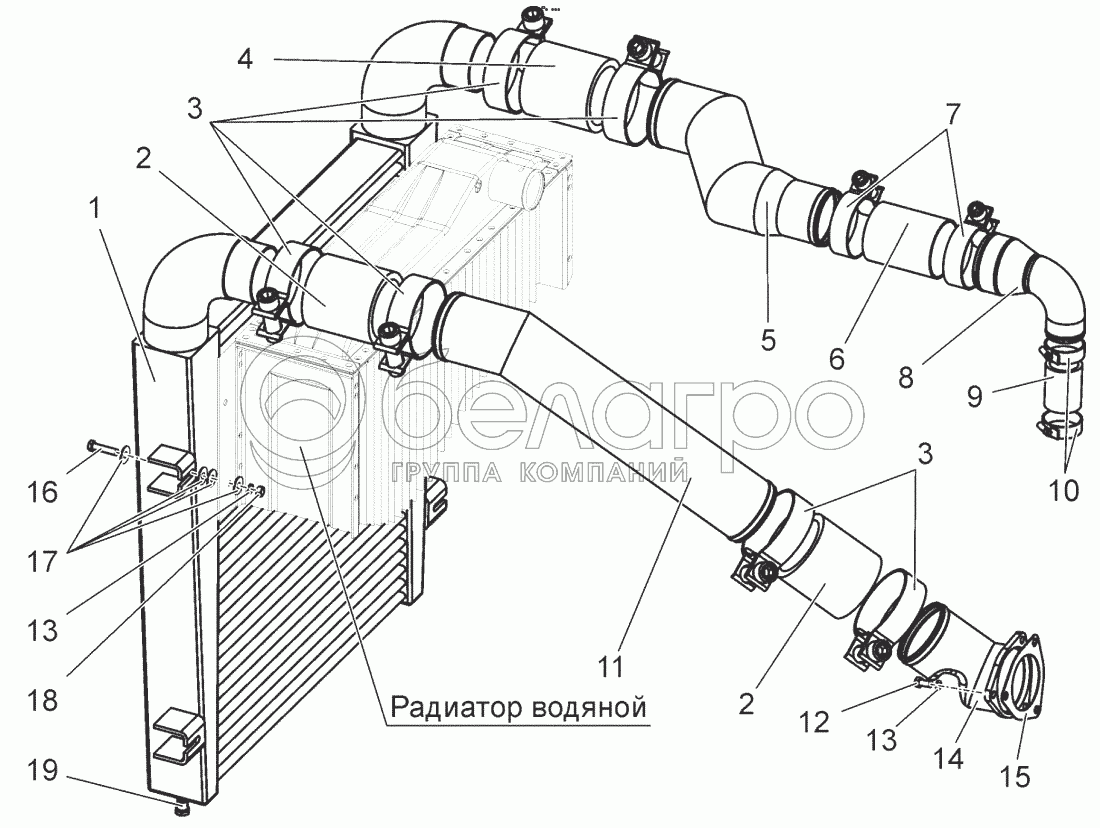 Каталог запасных частей к технике: МТЗ БЕЛАРУС 2103. Охлаждение наддувочного воздуха