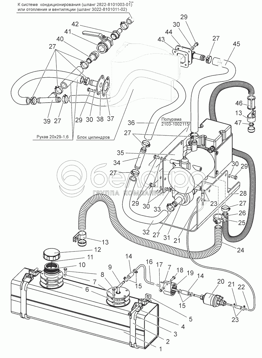 Каталог запасных частей к технике: МТЗ БЕЛАРУС 2103. Система подогрева. Бачок топливный. Кран
