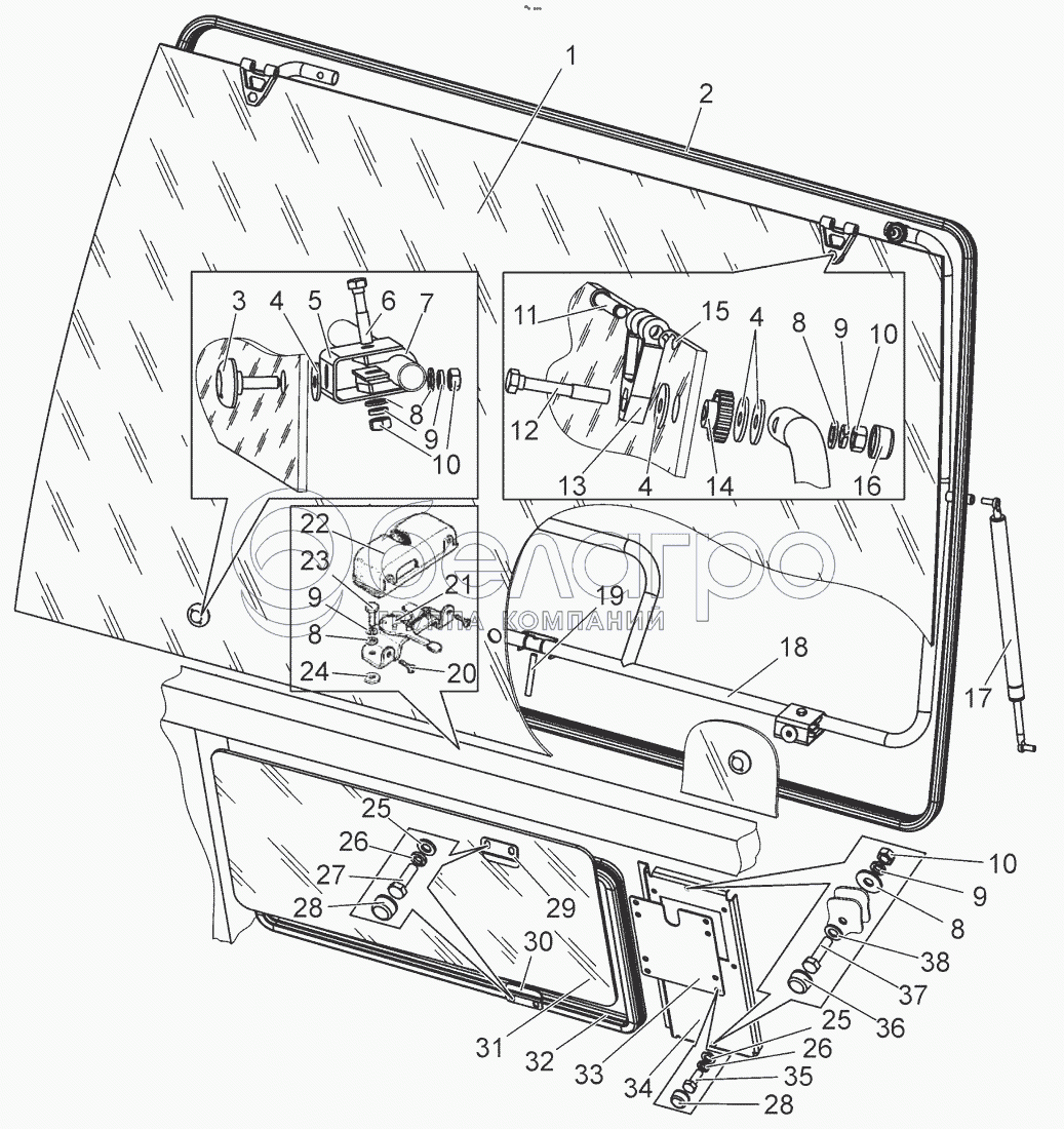 Каталог запасных частей к технике: МТЗ БЕЛАРУС 2103. Стекло заднее. Установка панели