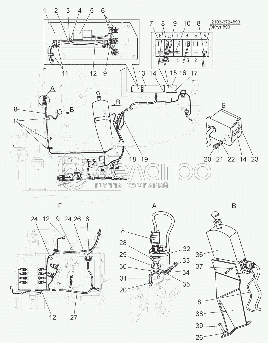 Каталог запасных частей к технике: МТЗ БЕЛАРУС 2103. Управление переключением передач и редуктором. Панель