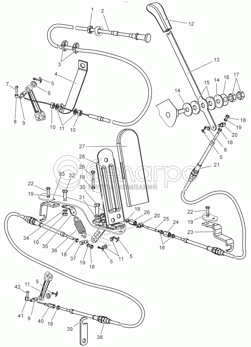 Каталог запасных частей к технике: МТЗ БЕЛАРУС 2103. Управление подачей топлива. Кронштейн. Серьга