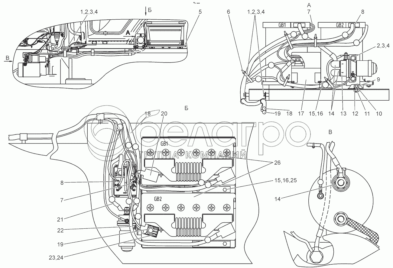 Каталог запасных частей к технике: МТЗ БЕЛАРУС 2103. Установка батарей аккумуляторных