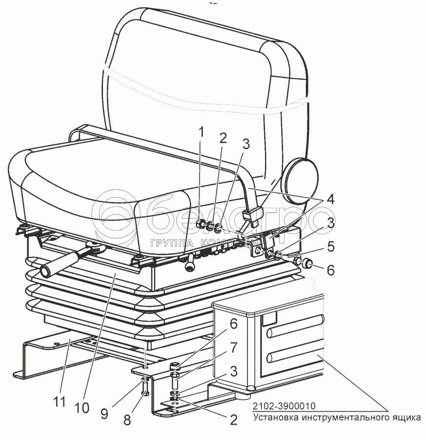Каталог запасных частей к технике: МТЗ БЕЛАРУС 2103. Установка сиденья