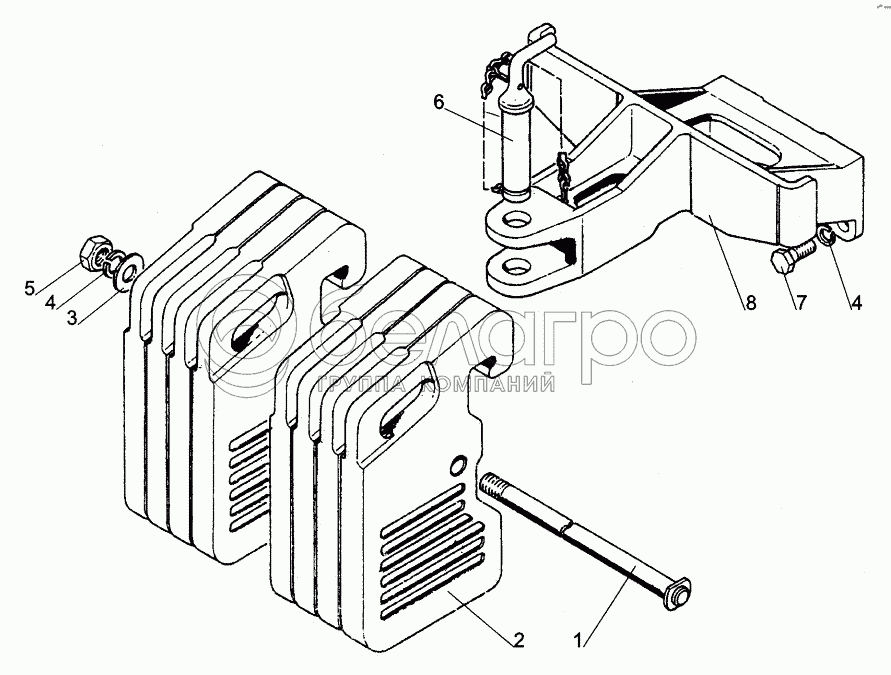 | 210-4235010 Груз дополнительный МТЗ-320 8х20кг комплект(кронштейн, струна и крепёж) передние, БЗТДиА |