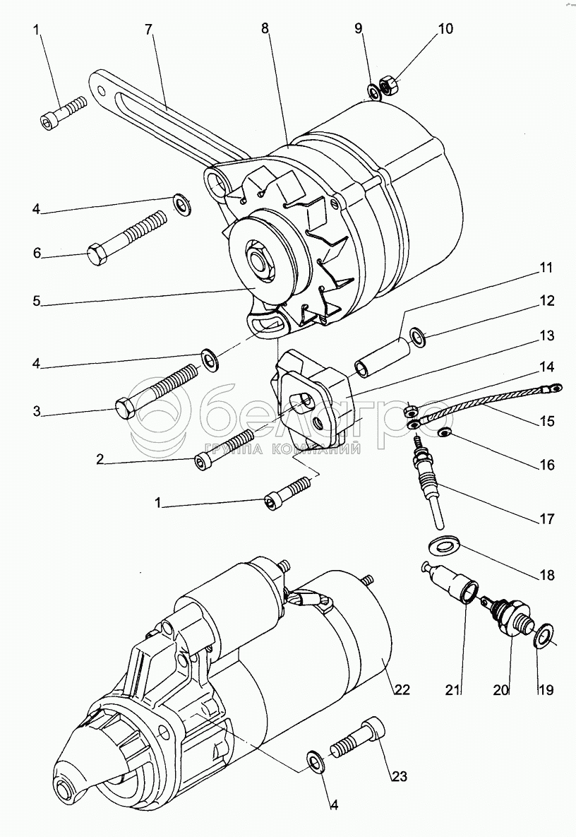 Каталог запасных частей к технике: МТЗ БЕЛАРУС 320. Генератор. Стартер;Alternator. Starter