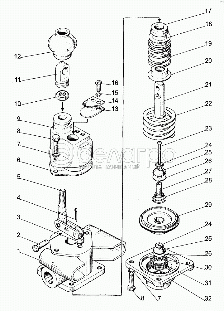 Каталог запасных частей к технике: МТЗ БЕЛАРУС 320. Кран тормозной;Brake Valve