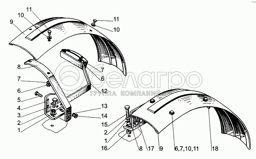 Каталог запасных частей к технике: МТЗ БЕЛАРУС 320. Крылья передних колес;Front Fenders