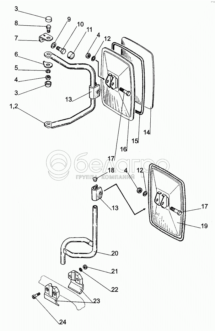 Каталог запасных частей к технике: МТЗ БЕЛАРУС 320. Зеркало наружное;Outer Rear-View Mirror