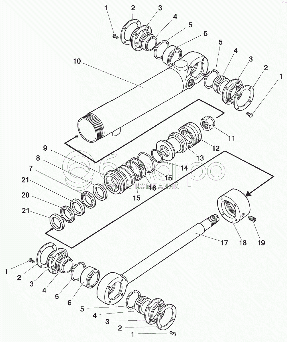 Каталог запасных частей к технике: МТЗ БЕЛАРУС 3522.5. Гидроцилиндр Ц63 (63x30-250)