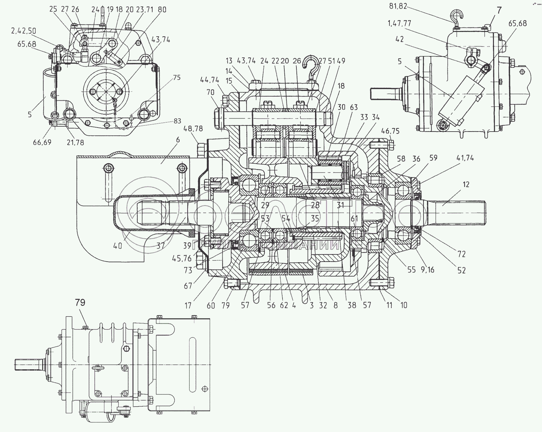 Каталог запасных частей к технике: МТЗ БЕЛАРУС 3522.5. Передний ВОМ. Редуктор