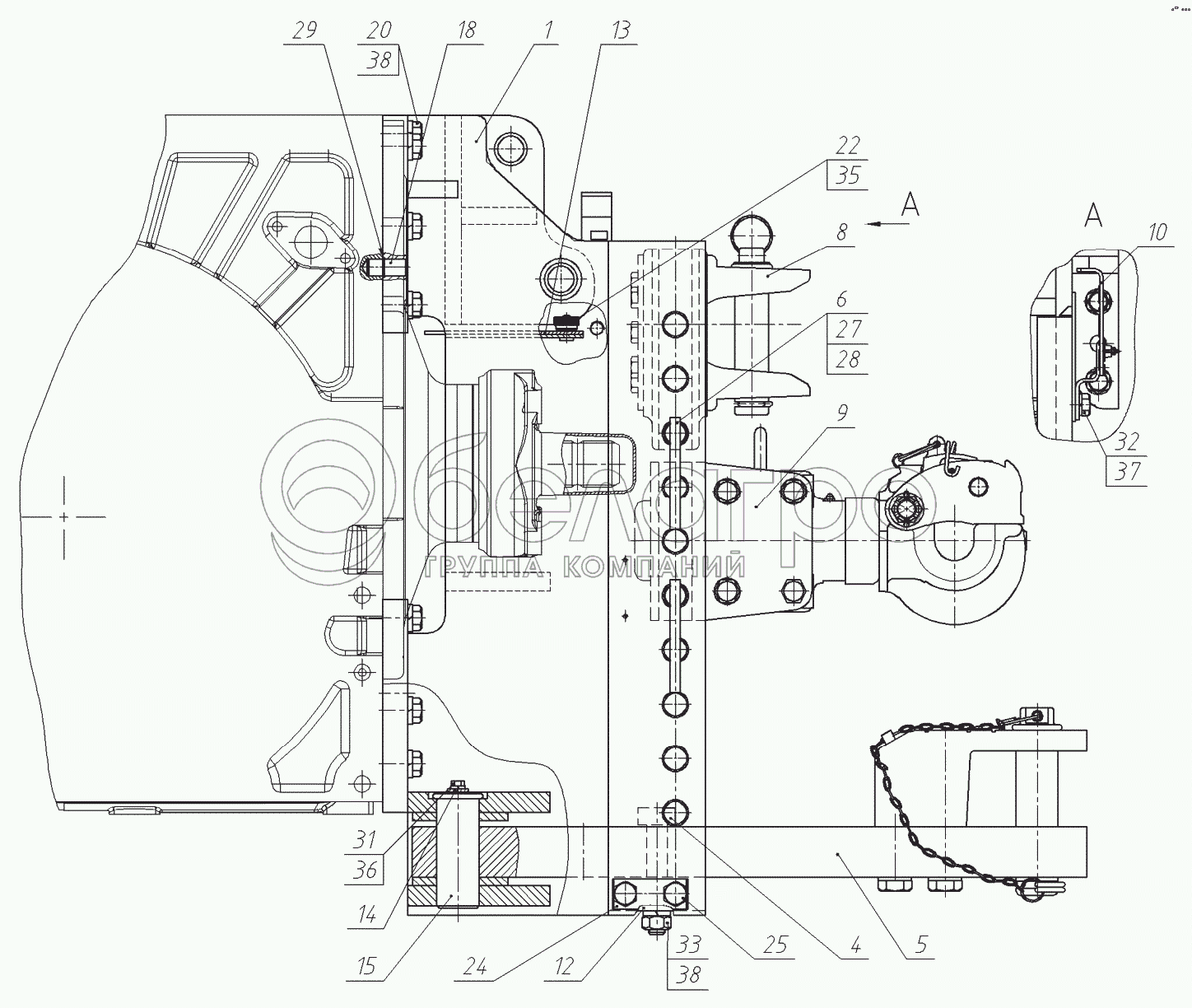 Каталог запасных частей к технике: МТЗ БЕЛАРУС 3522.5. Тягово-сцепное устройство