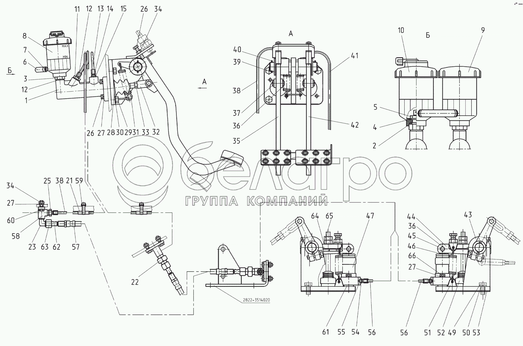 Каталог запасных частей к технике: МТЗ БЕЛАРУС 3522.5. Управление тормозами