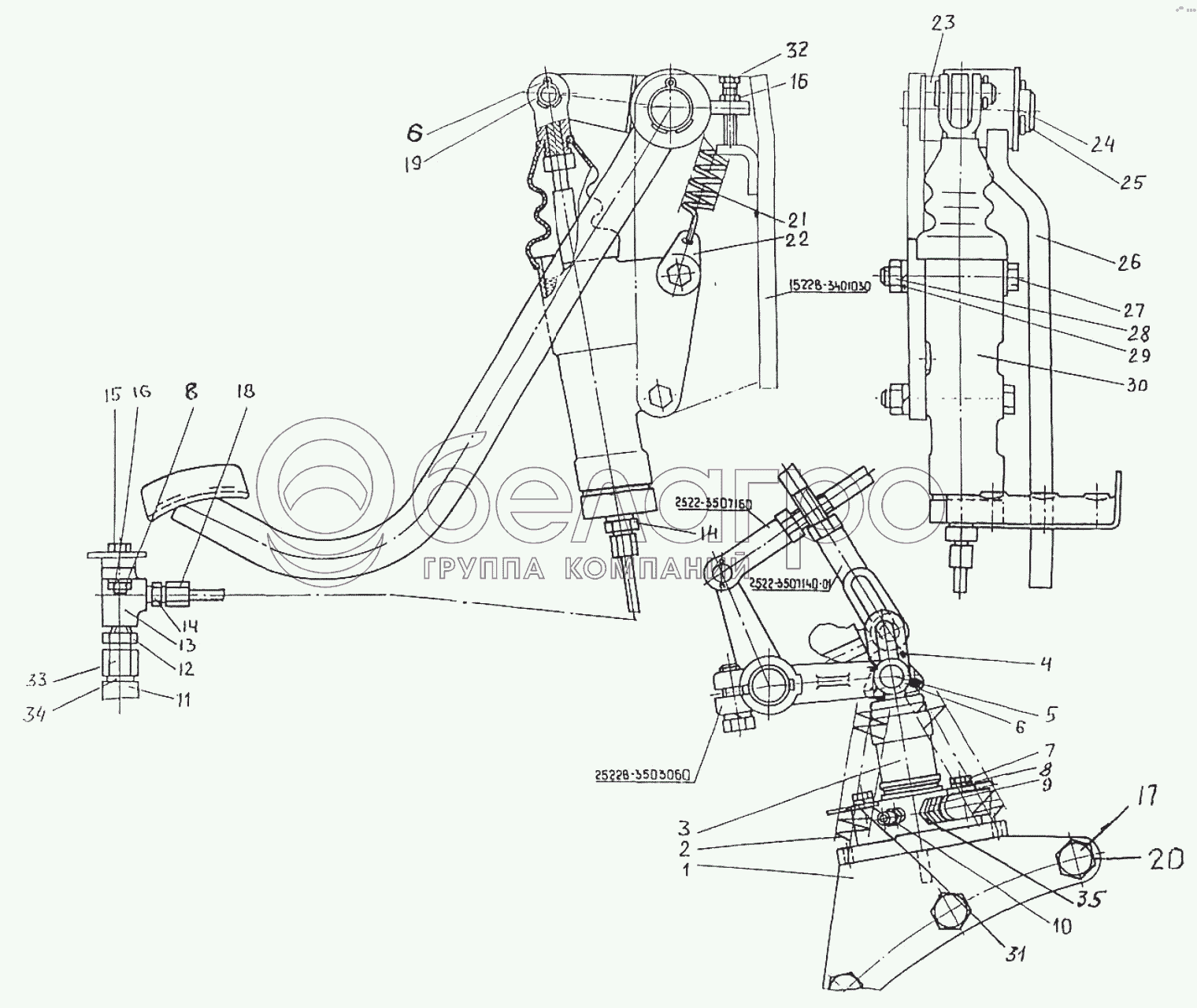 Каталог запасных частей к технике: МТЗ БЕЛАРУС 3522.5. Управление тормозами на реверсе