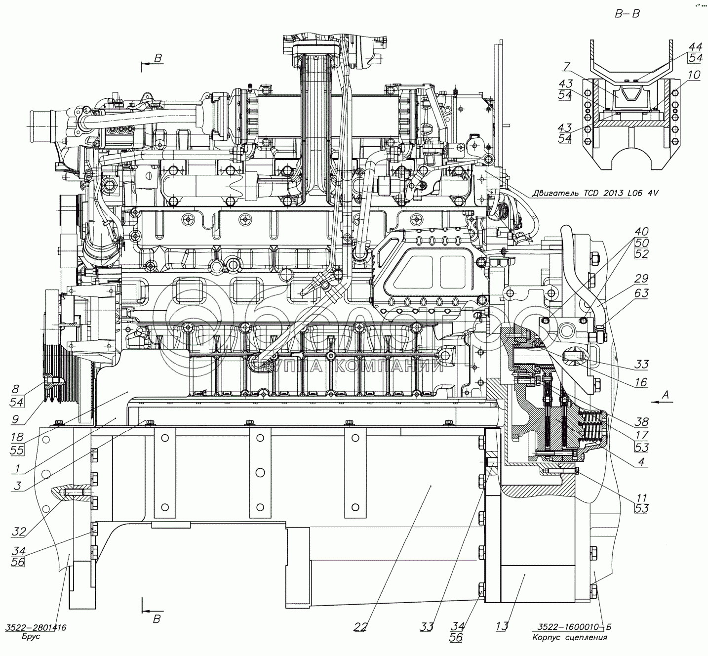 Каталог запасных частей к технике: МТЗ БЕЛАРУС 3522.5. Установка двигателя