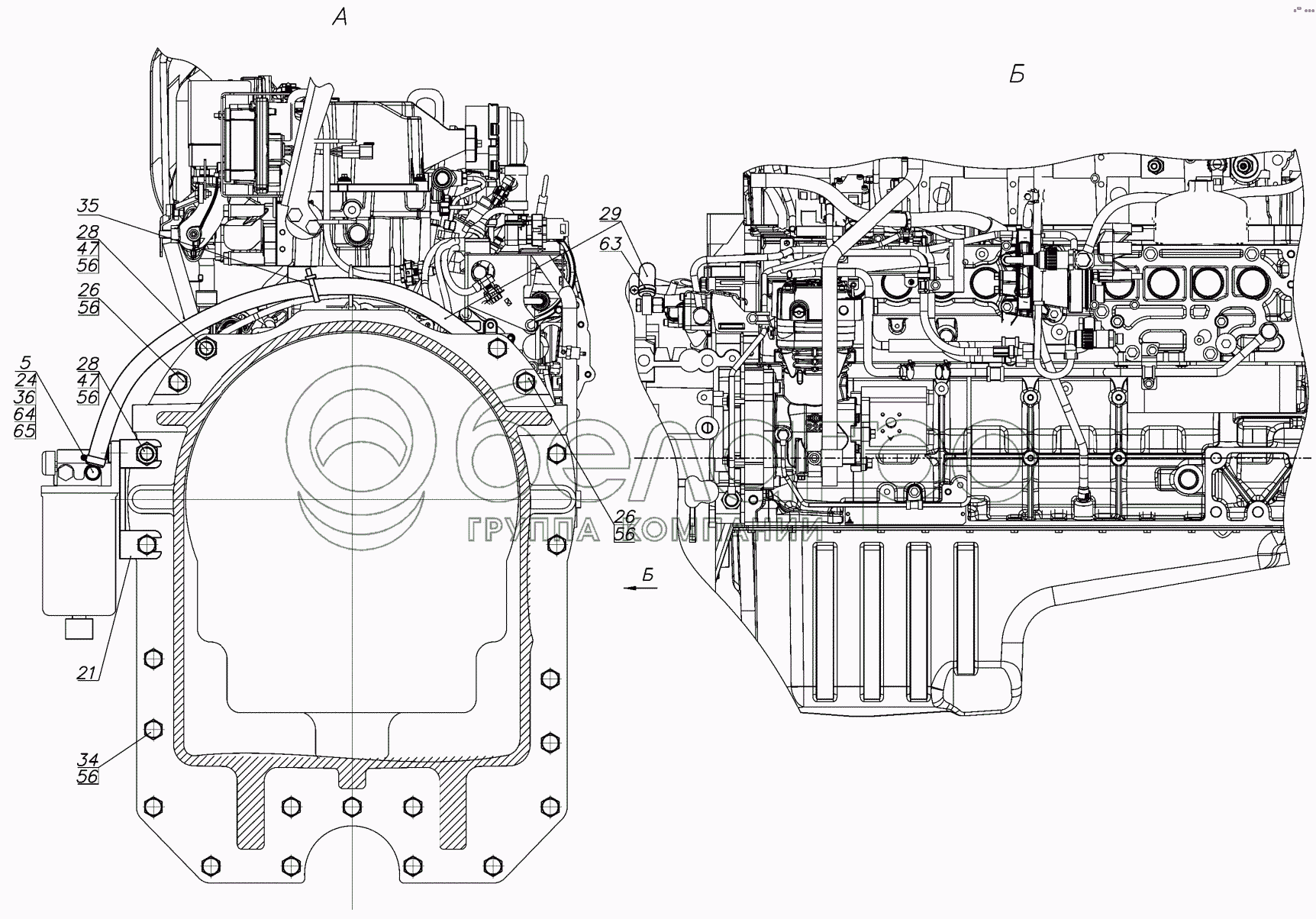 Каталог запасных частей к технике: МТЗ БЕЛАРУС 3522.5. Установка двигателя