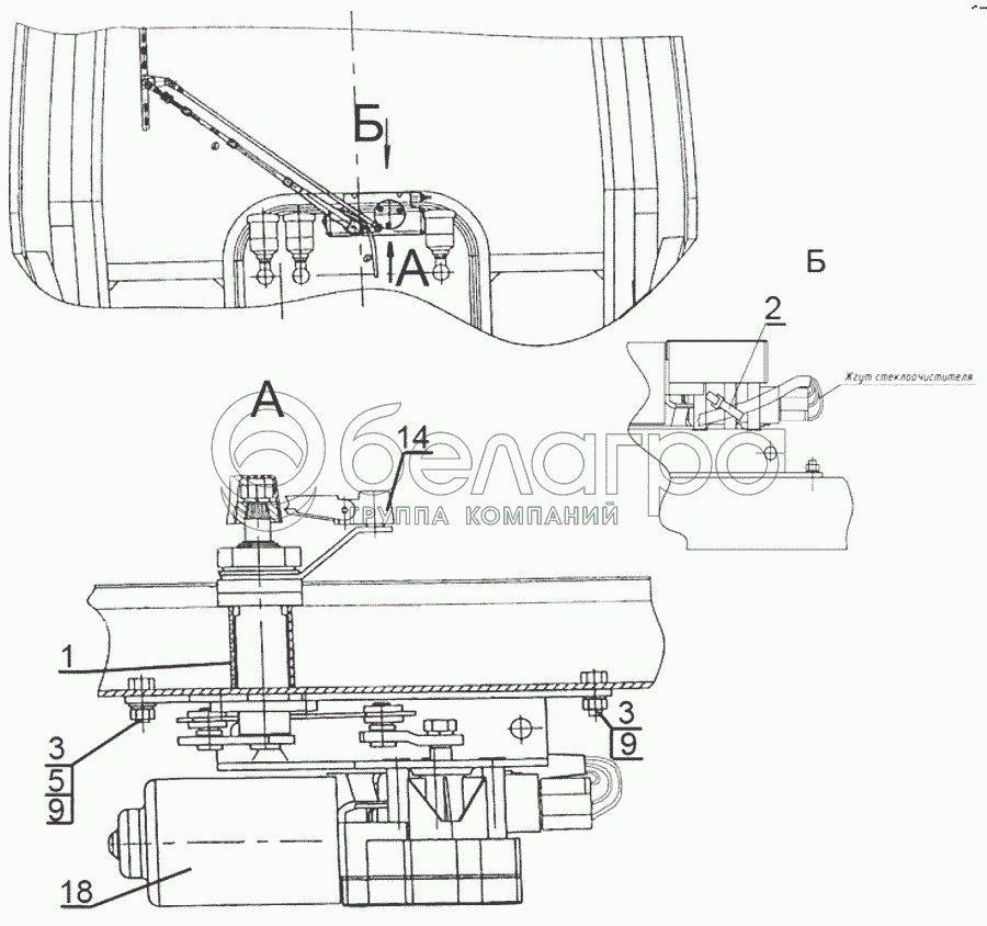 Каталог запасных частей к технике: МТЗ БЕЛАРУС 3522.5. Установка переднего стеклоочистителя