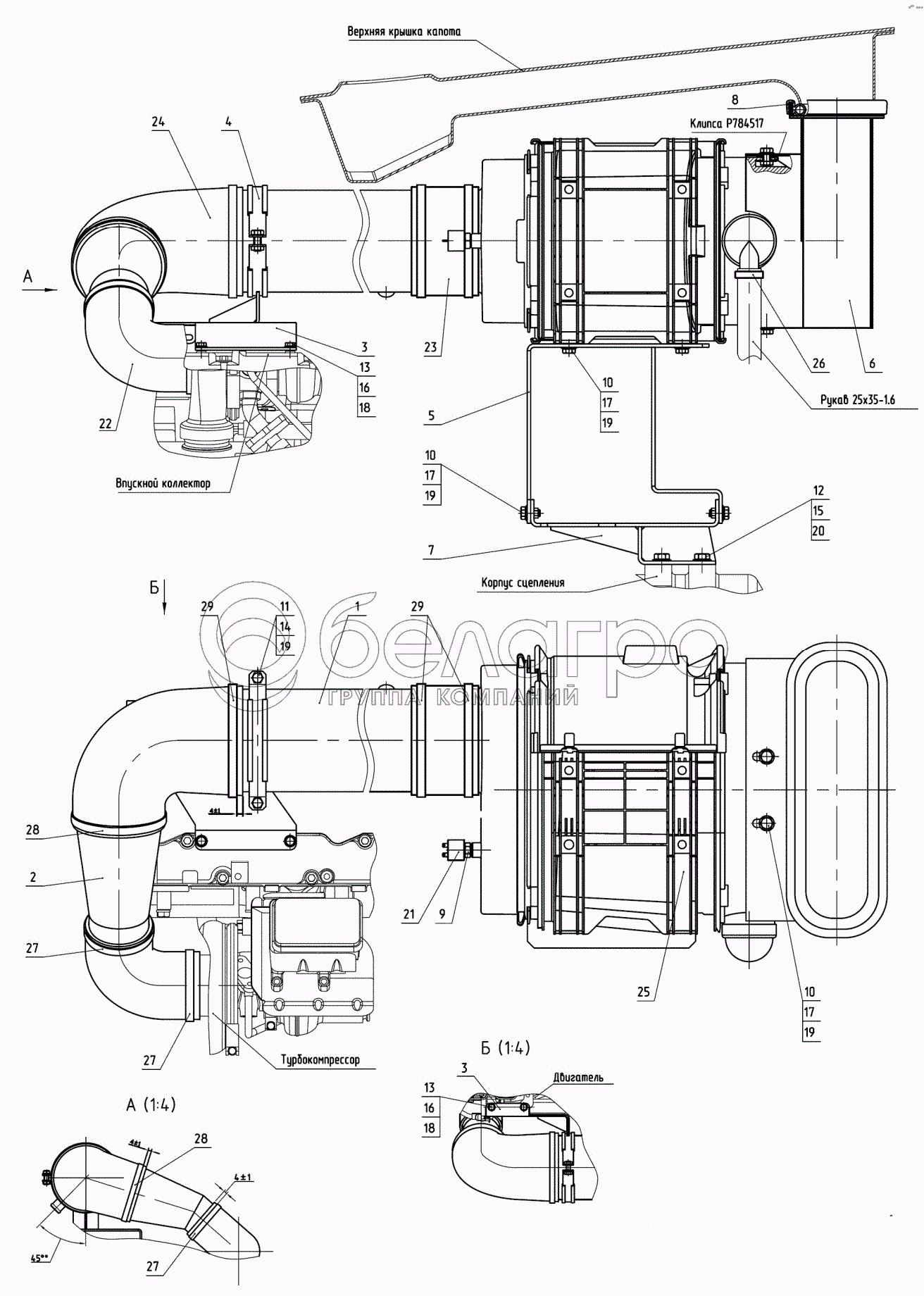 Каталог запасных частей к технике: МТЗ БЕЛАРУС 3522.5. Установка воздухоочистителя