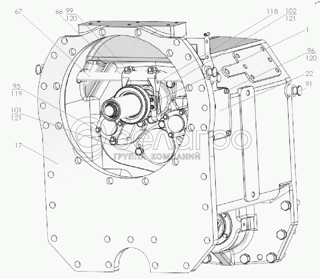 Каталог запасных частей к технике: МТЗ БЕЛАРУС 3525. Корпус сцепления 3525-1600010