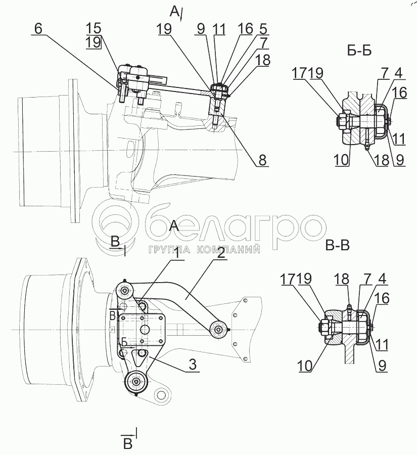 Каталог запасных частей к технике: МТЗ БЕЛАРУС 3525. Механизм поворота крыла 3520-8403050