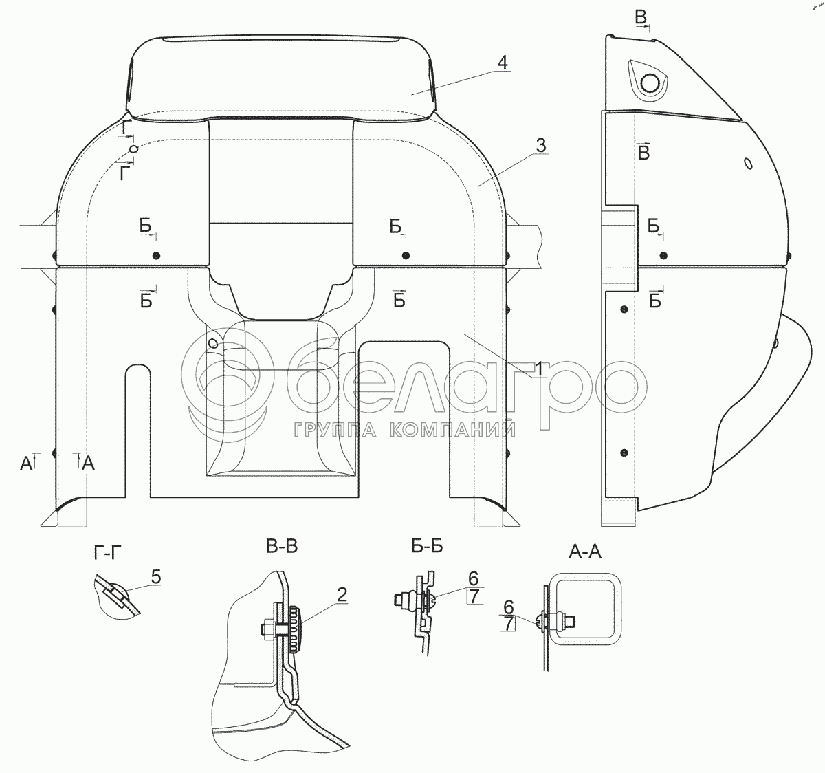 Каталог запасных частей к технике: МТЗ БЕЛАРУС 3525. Облицовка 2522-6700300-Б