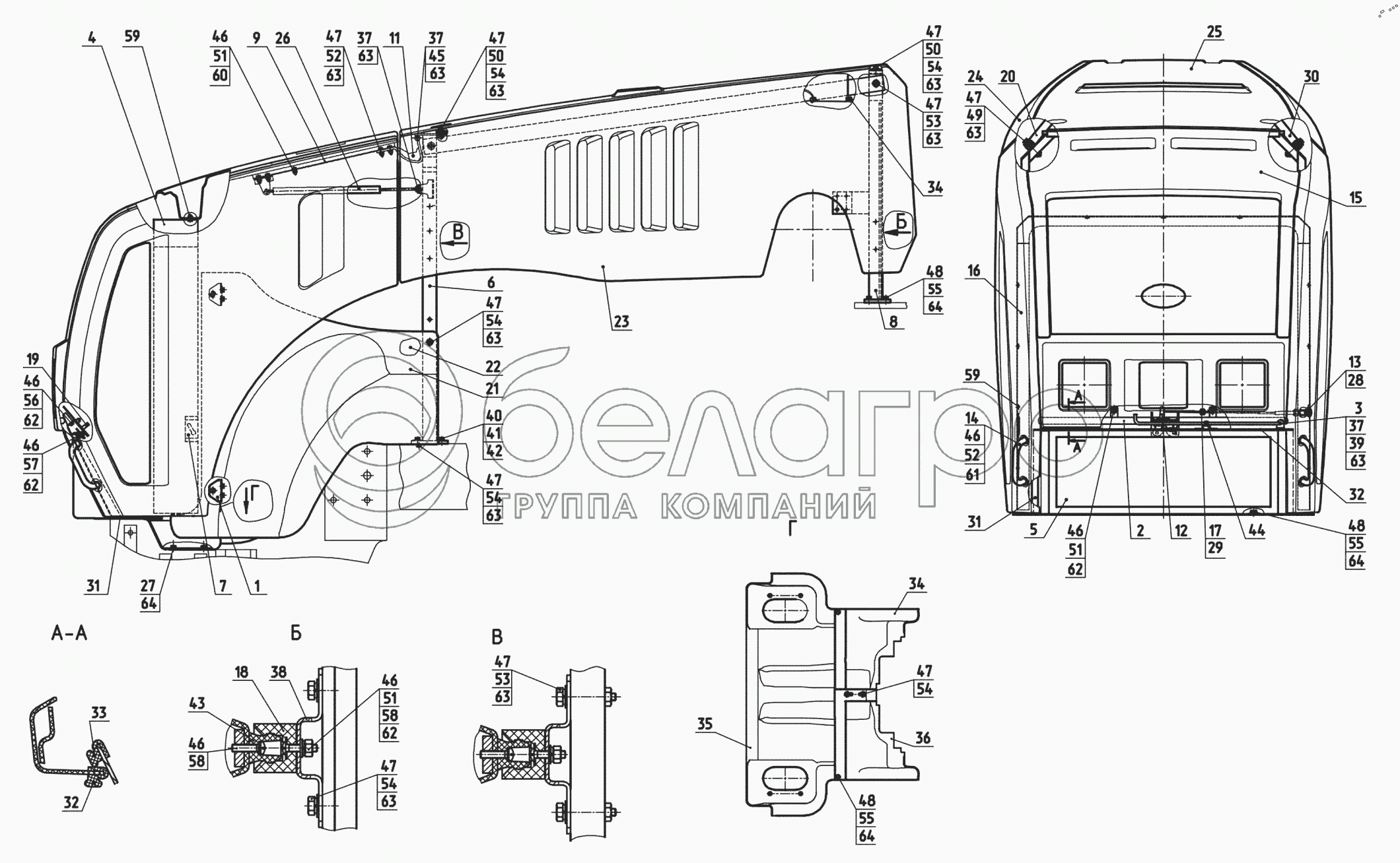 Каталог запасных частей к технике: МТЗ БЕЛАРУС 3525. Облицовка 3522С-8400005-02