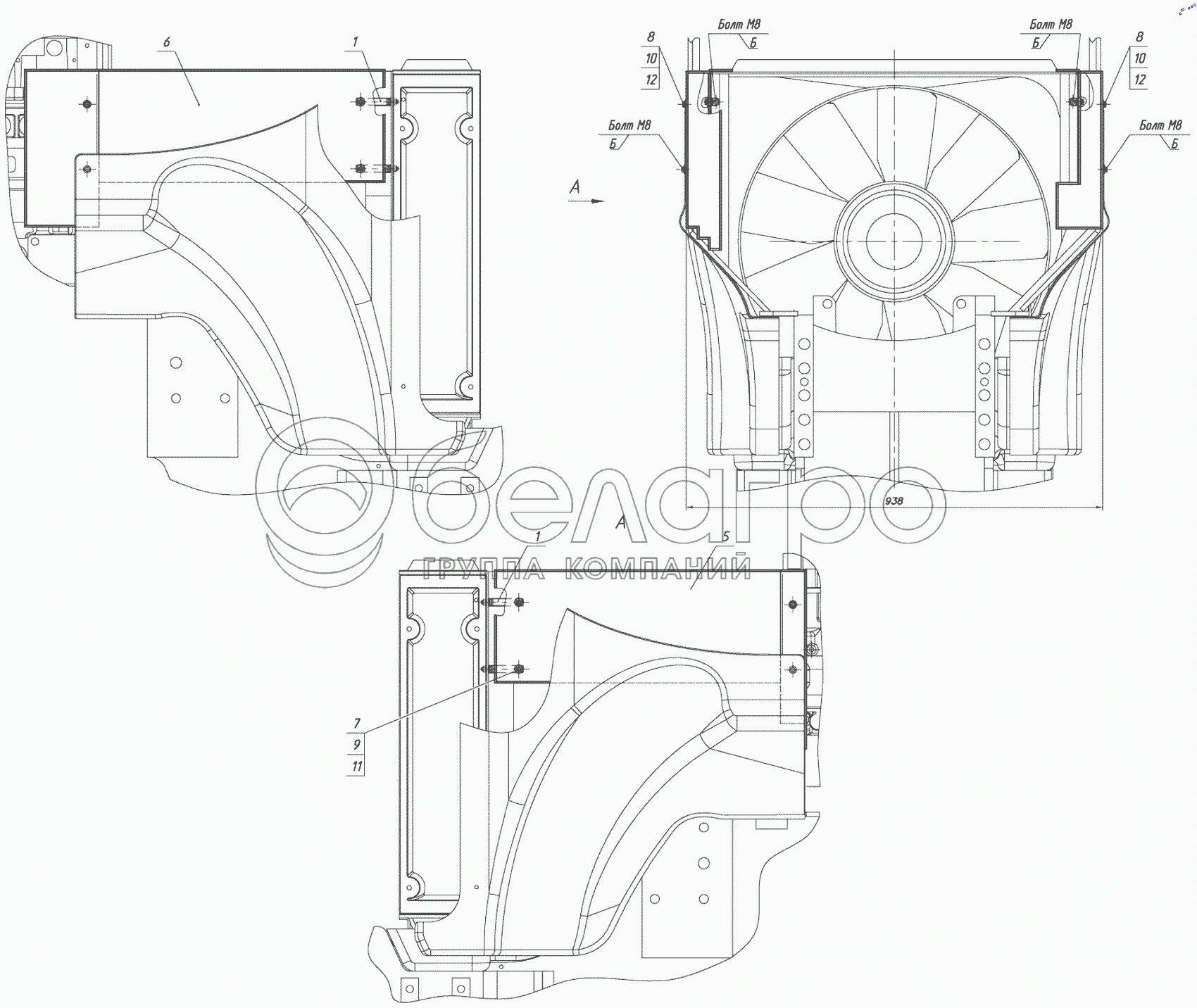 Каталог запасных частей к технике: МТЗ БЕЛАРУС 3525. Ограждение вентилятора 3522С-1309100