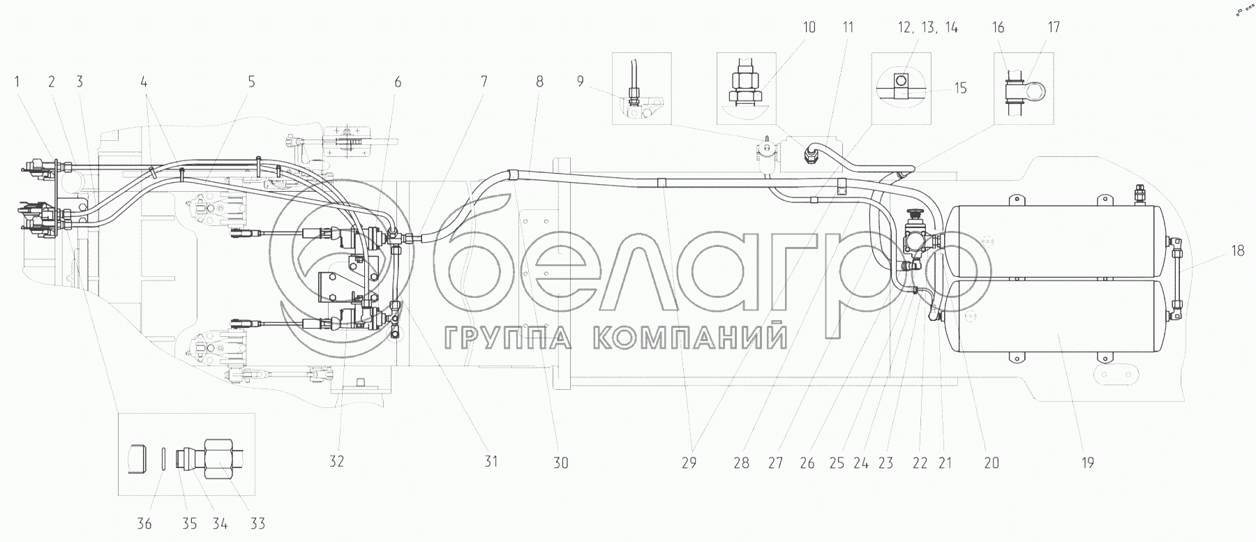 Каталог запасных частей к технике: МТЗ БЕЛАРУС 3525. Пневмопривод (комбинированный) 3522С-3506710