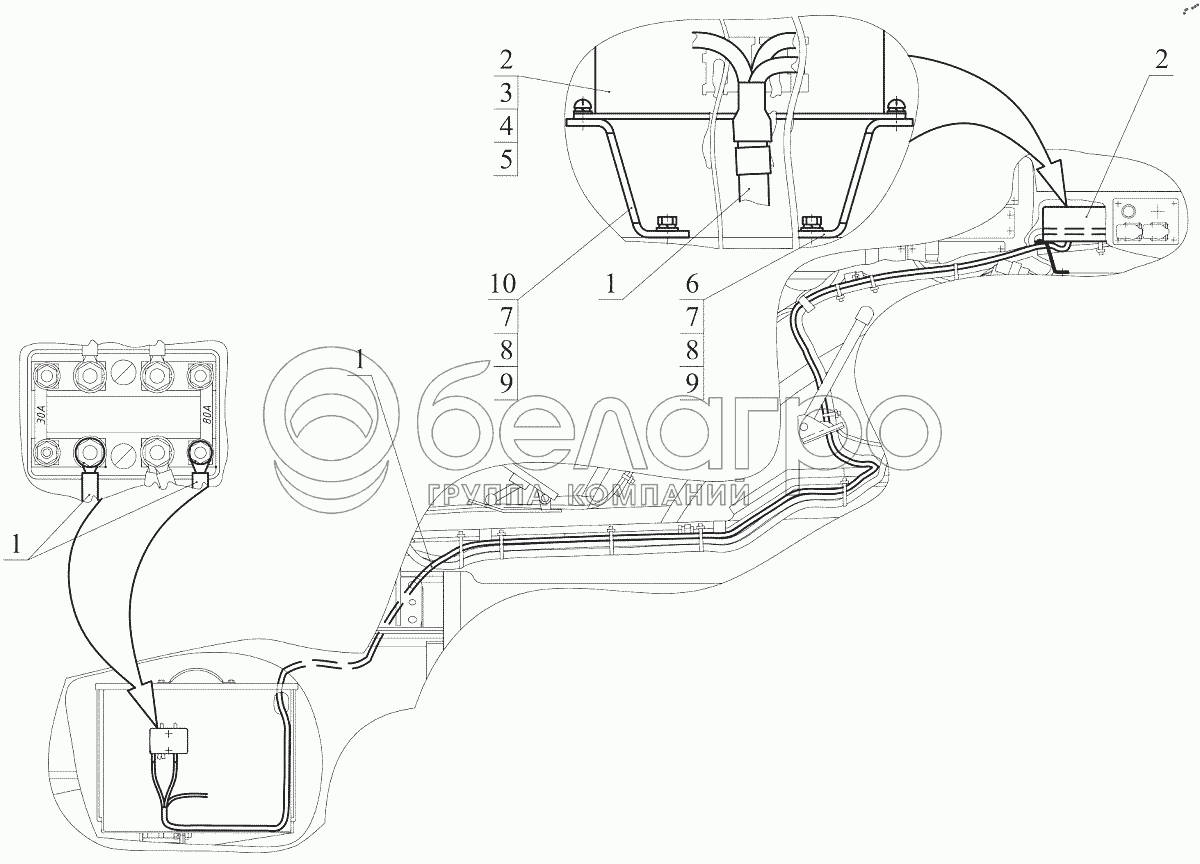 Каталог запасных частей к технике: МТЗ БЕЛАРУС 3525. Установка блока коммутации и защиты 3522-8700095