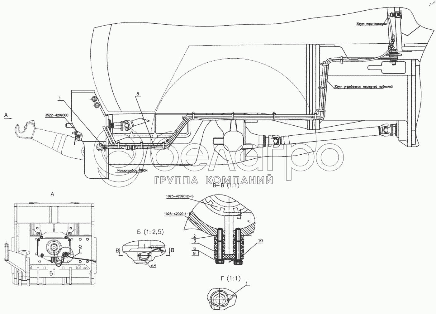 Каталог запасных частей к технике: МТЗ БЕЛАРУС 3525. Установка датчика оборотов ПВОМ 3522-3843005