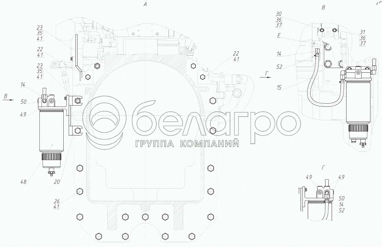 Каталог запасных частей к технике: МТЗ БЕЛАРУС 3525. Установка двигателя 3522С-1001001