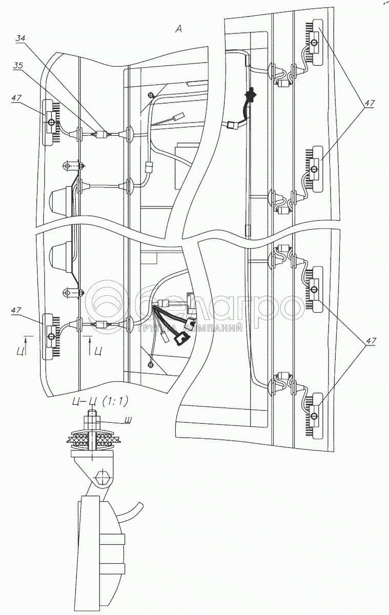 Каталог запасных частей к технике: МТЗ БЕЛАРУС 3525. Установка фар рабочих 925-3700110-02