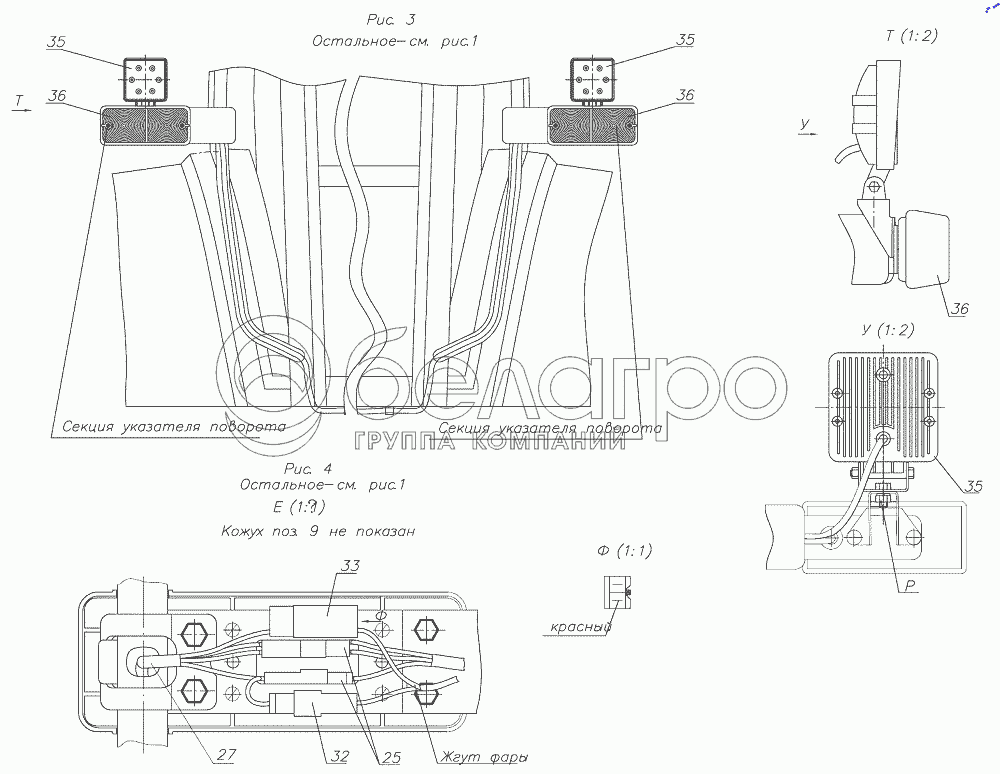 Каталог запасных частей к технике: МТЗ БЕЛАРУС 3525. Установка фонарей передних 925-3700025-02