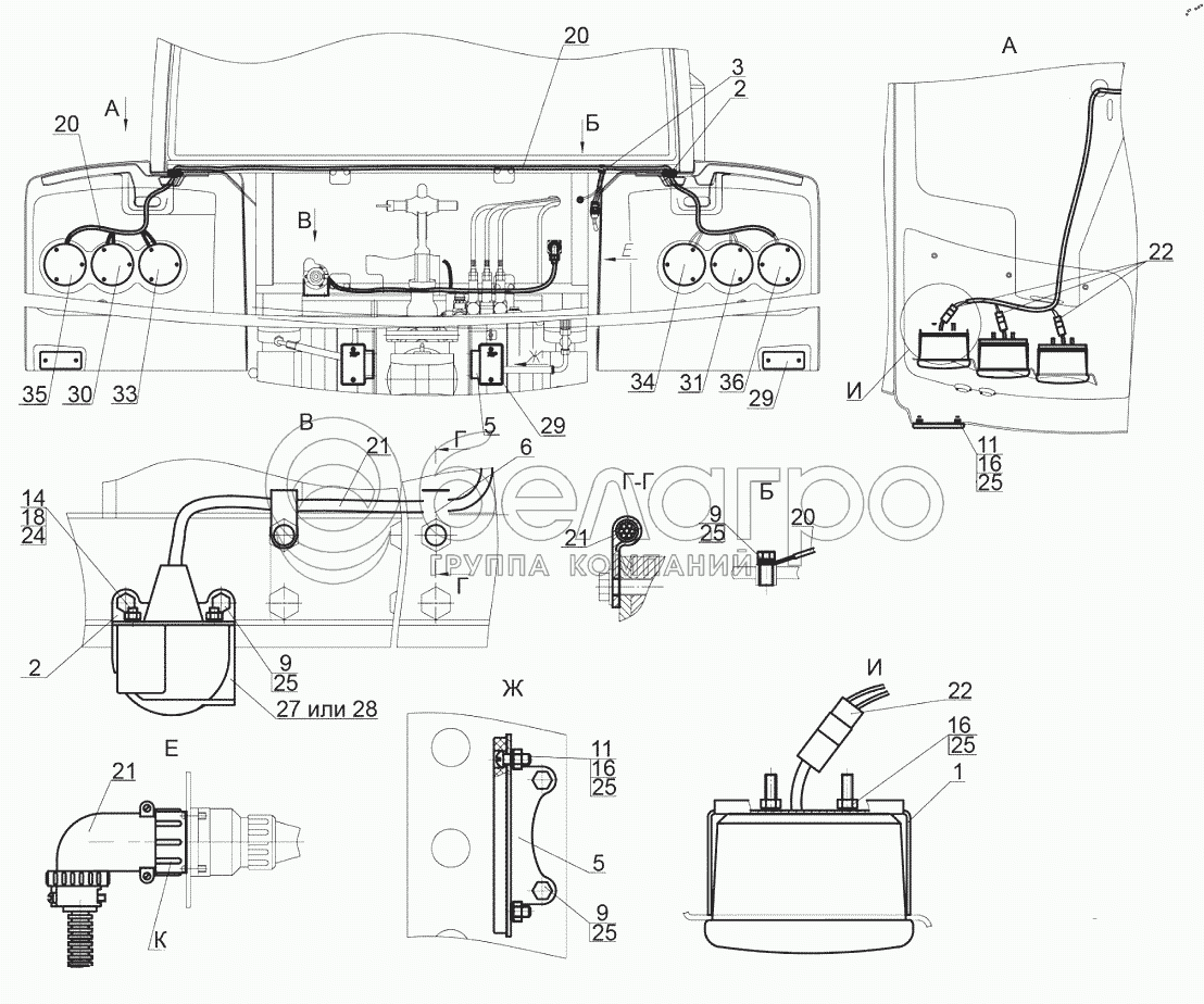 Каталог запасных частей к технике: МТЗ БЕЛАРУС 3525. Установка фонарей задних 3522-3700060