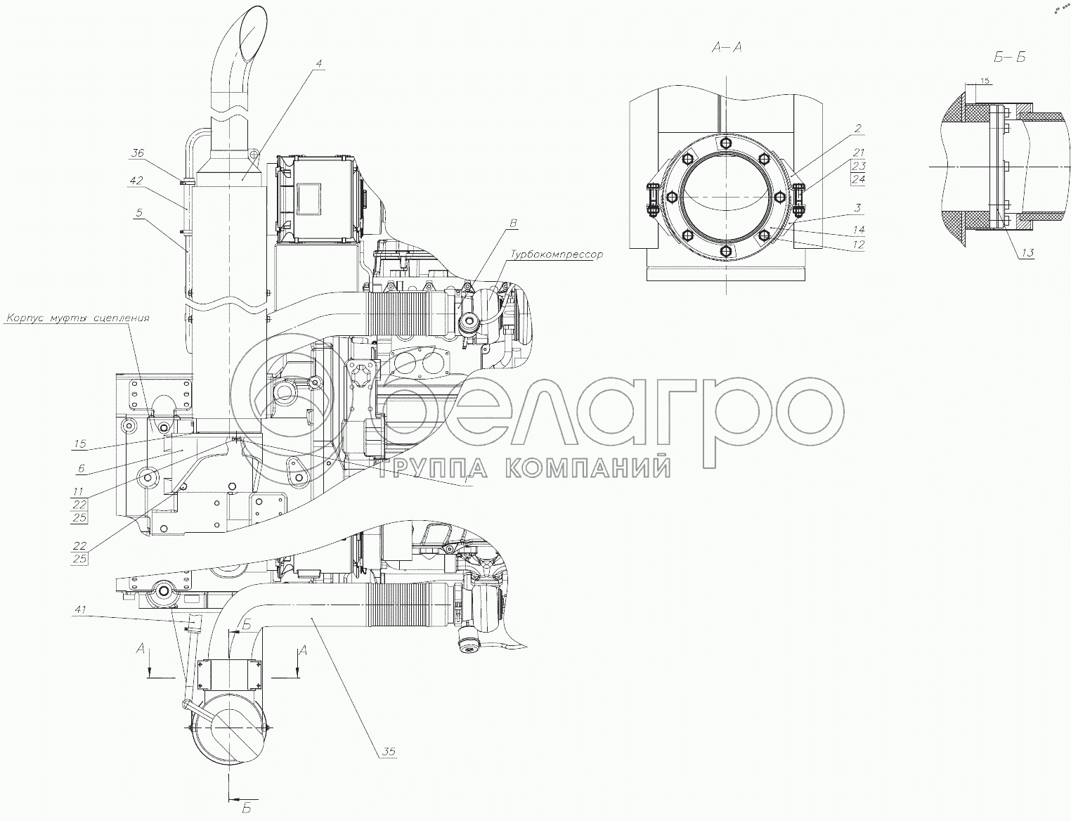 Каталог запасных частей к технике: МТЗ БЕЛАРУС 3525. Установка глушителя 3522С-1205005