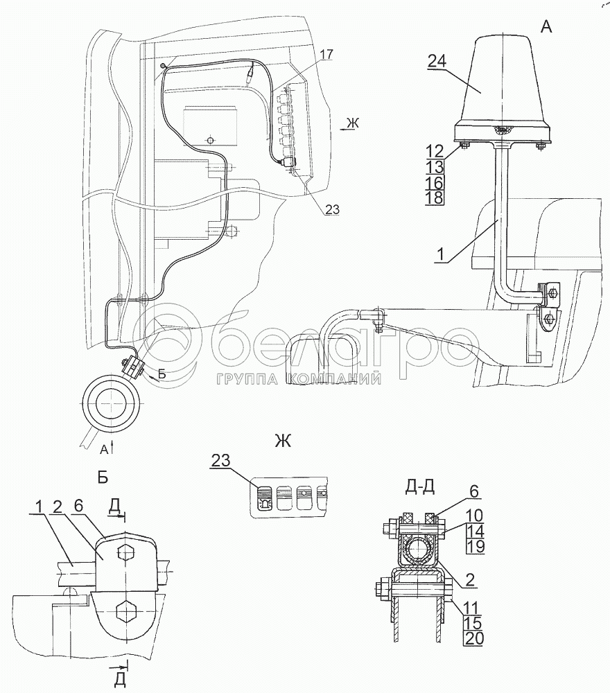 Каталог запасных частей к технике: МТЗ БЕЛАРУС 3525. Установка маяка сигнального 2522-3738010-01