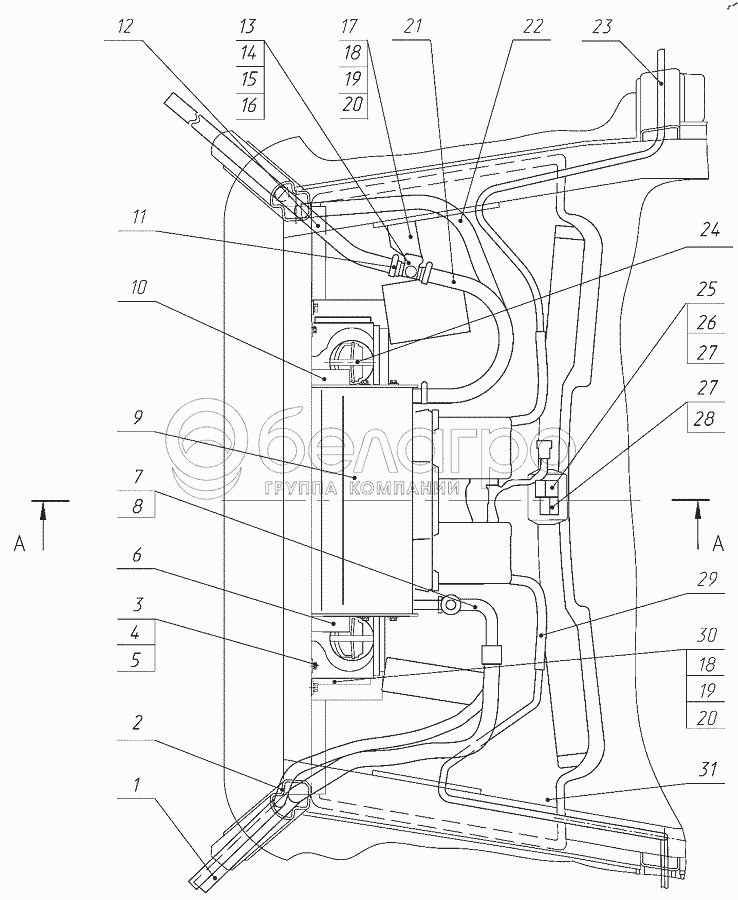 Каталог запасных частей к технике: МТЗ БЕЛАРУС 3525. Установка отопителя-охладителя 2822-8101010