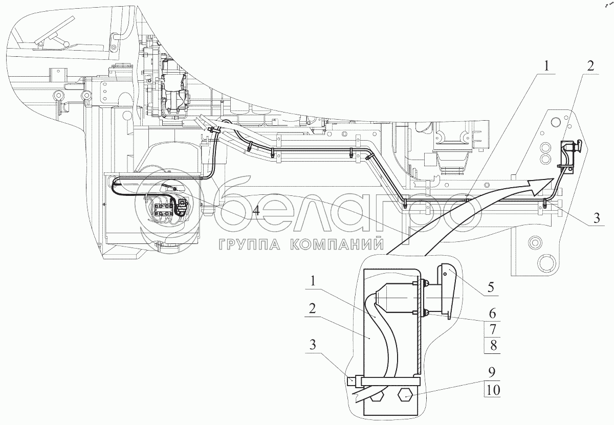 Каталог запасных частей к технике: МТЗ БЕЛАРУС 3525. Установка передней розетки 3522-8700085