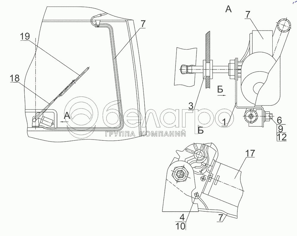 Каталог запасных частей к технике: МТЗ БЕЛАРУС 3525. Установка заднего стеклоочистителя 923-5205020
