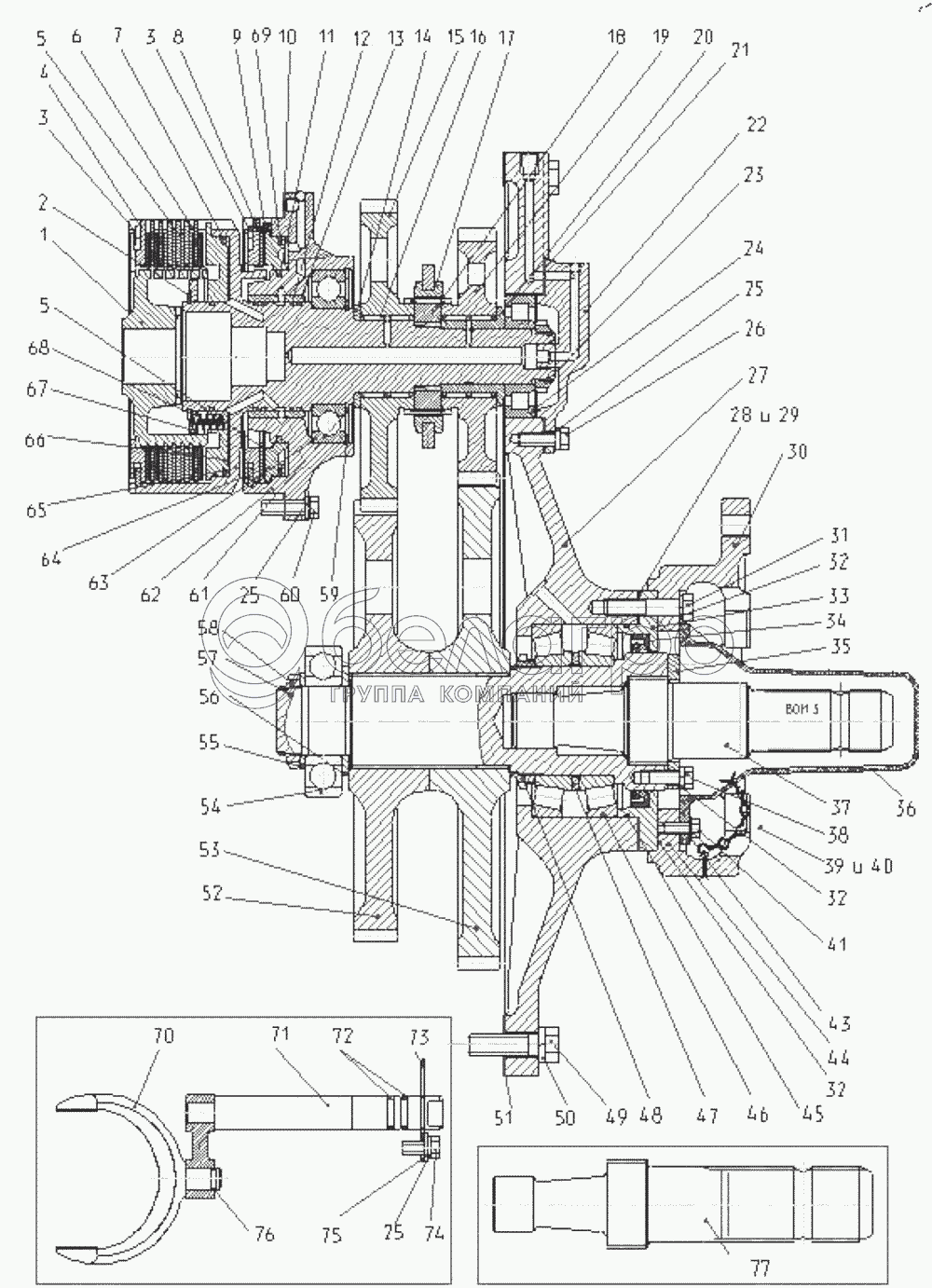 Каталог запасных частей к технике: МТЗ БЕЛАРУС 3525. ВОМ задний 3522-4202010, 3522-4202010-01