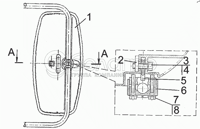 Каталог запасных частей к технике: МТЗ БЕЛАРУС 3525. Зеркало наружное САКД 458201.050