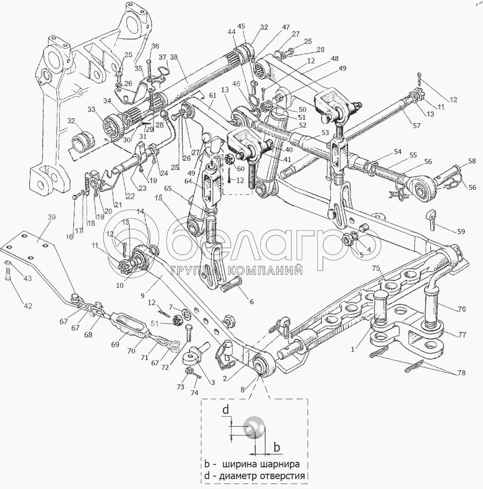 Каталог запасных частей к технике: МТЗ БЕЛАРУС 421. Механизм задней навески 421-4605010/-01/-02