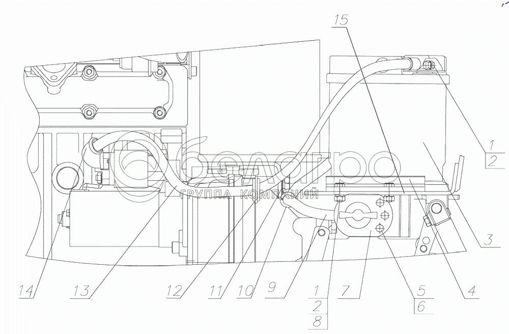 Каталог запасных частей к технике: МТЗ БЕЛАРУС 421. Установка аккумуляторных батарей 321-3700080-Б