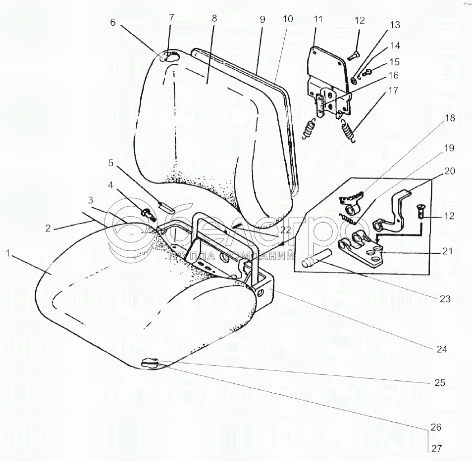 Каталог запасных частей к технике: МТЗ Беларус-422.1. Сиденье оператора